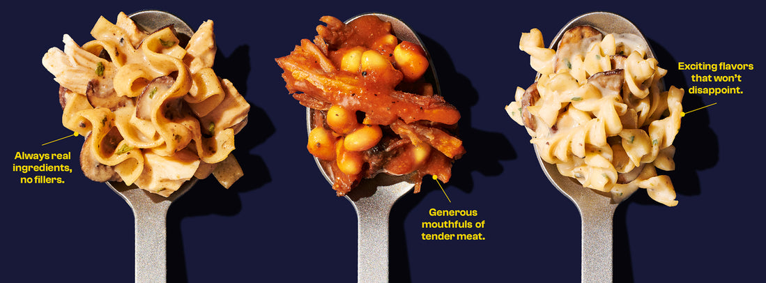 35+ grams of protein per pouch. 650+ calories of real fuel. Wide-mouth pack design that actually works with a spork. This isn't survival food, it's food that makes the wild worth it.